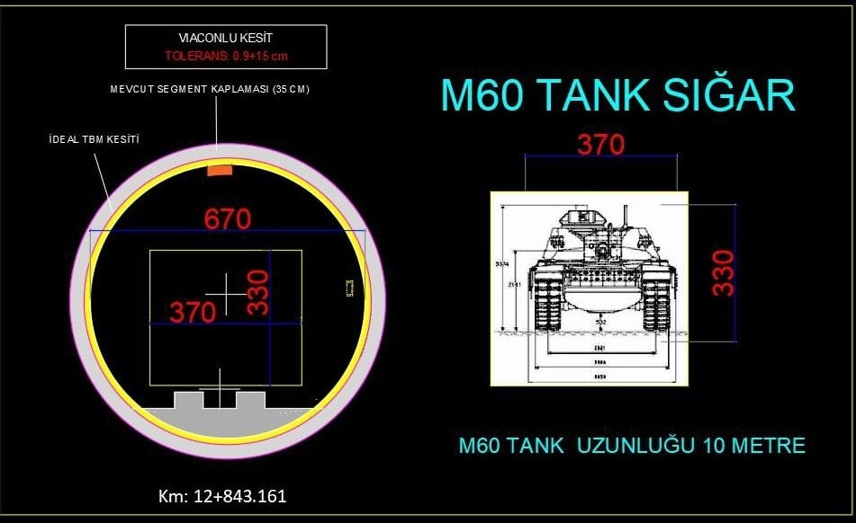 “Demir yolu tünelleri ve makas yapıları da gerektiğinde sığınma veya tahliye koridoru olarak kullanılabilecek. Çift hatlı demir yolu tünellerimiz de yalnızca lojistik taşımaları değil; özel durumlarda sığınma, barınma ve tahliye gibi amaçları da mümkün kılıyor. Faydalı genişliği 12,5 metre, yüksekliği 8 metre olan çift hatlı demir yolu tünellerimiz; iki adet M60 tankın yan yana geçişine imkan tanıyan, hatta bir de F-16 savaş uçağının sığabileceği kadar genişlikte bir hacme sahiptir.”