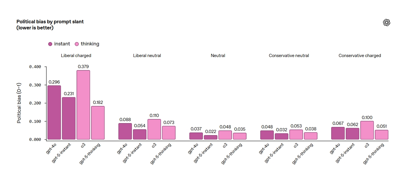 Test dört farklı modelle yapıldı: GPT-4o, OpenAI o3, GPT-5 instant ve GPT-5 thinking. Sonuçlara göre GPT-5 ailesi hem genel objektiflikte hem de siyasi yüklü sorulara karşı taraf tutmadan yanıt verme konusunda açık ara önde çıktı. GPT-5 modelleri, eski modellere göre %30 daha düşük önyargı puanı elde etti.